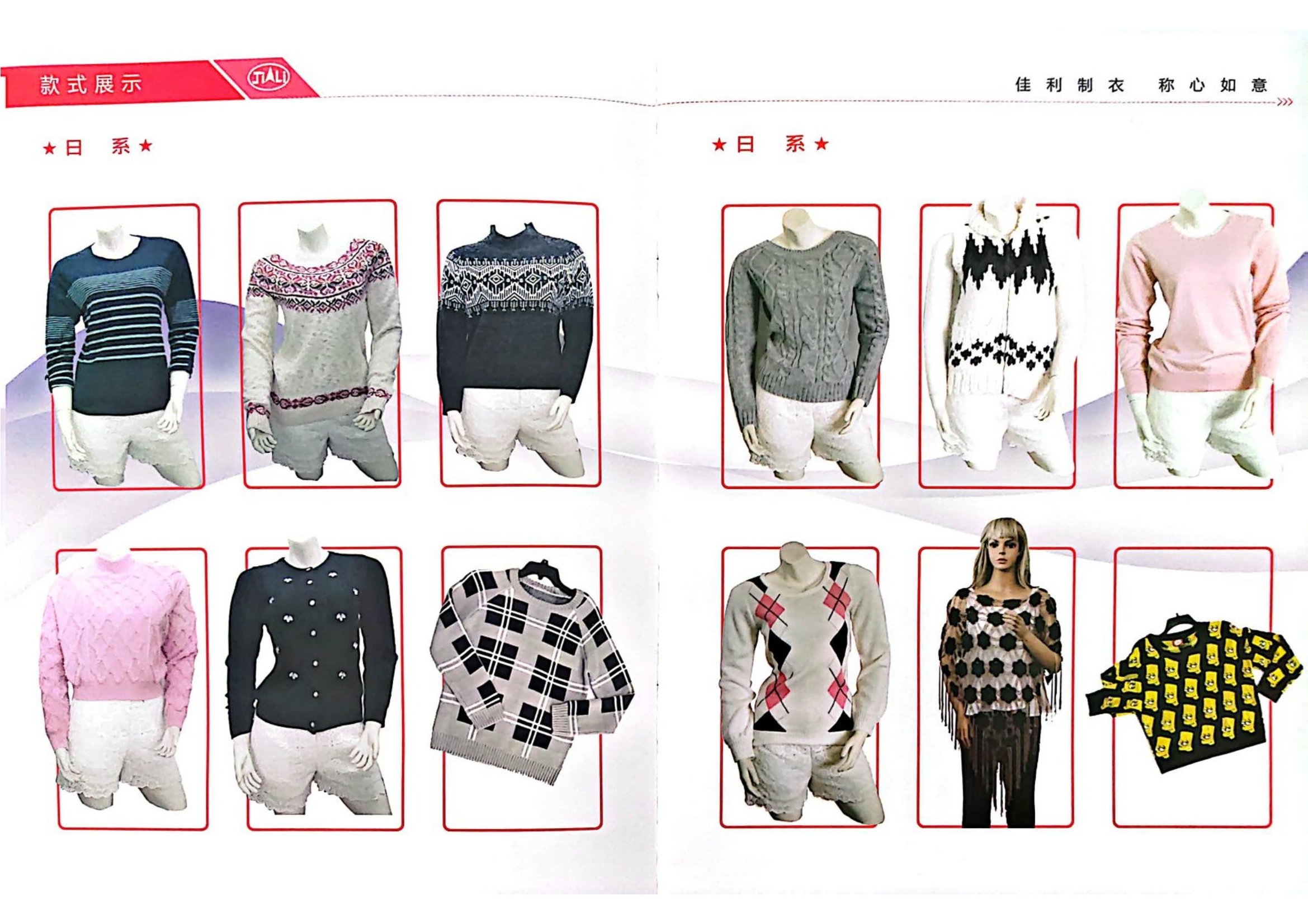 山東省乳山市佳利制股份有限公司于2001年2月成立,位于乳山市城區(qū)工業(yè)園營口路。現有從業(yè)人員260人,其中男性100人,女性160人。固定資產5000萬元,占地22000㎡,建筑面積13800㎡。主要生產各種針型的毛衫及手鉤、刺繡等工藝服裝,針織、梭織面料服裝,主要銷往日本、美國、意大利、英國等幾十個國家和地區(qū)。